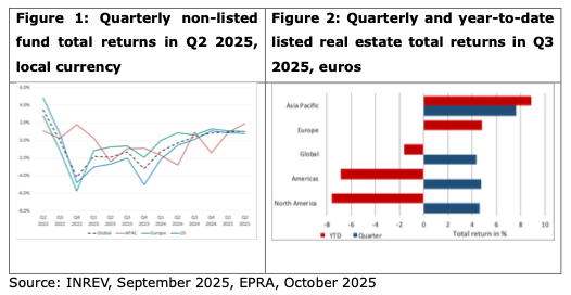 Encouragingly, for these investors, the region's unlisted markets have started to perform positively. Asia Pacific non-listed funds were the strongest performers in Q2 2025. Likewise, the region's listed property companies and REITs have outperformed their US and European counterparts in both the third quarter and since the start of 2025. The equity real estate markets are usually a reliable indicator of future private market performance, which should prove positive for Asia Pacific non-listed real estate markets (See Figures 1 and 2 below).